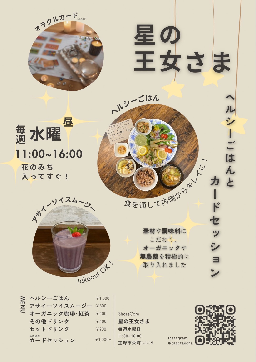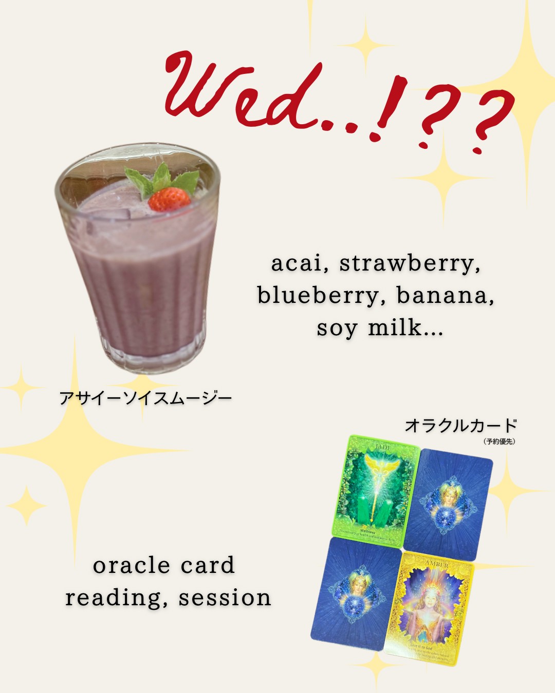 【内容】食材にこだわったヘルシーごはんやアサイースムージーなどのドリンクと、カードリーディングを提供